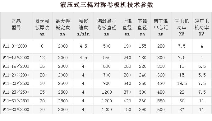 液壓三輥對(duì)稱式卷板機(jī)是我公司開發(fā)的具有卷彎和折彎功能的專用設(shè)備,可將金屬板材卷成圓形、弧形和一定范圍內(nèi)的錐形工件;通過聯(lián)接專用折彎模具,本機(jī)還可具有板材折彎的功能??蓮V泛使用于鍋爐、化工、金屬結(jié)構(gòu)及機(jī)械制造行業(yè)等領(lǐng)域。